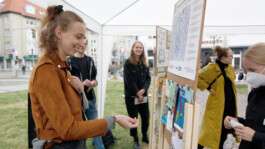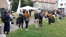 Ausgestattet mit Slogans testeten die Studierenden ihre Ideen mit Braunschweiger Bürger*innen und sammelten Reaktionen und Reflexionen in einer dreiteiligen Podcast-Reihe. Foto: GTAS, Kathrin Krones.